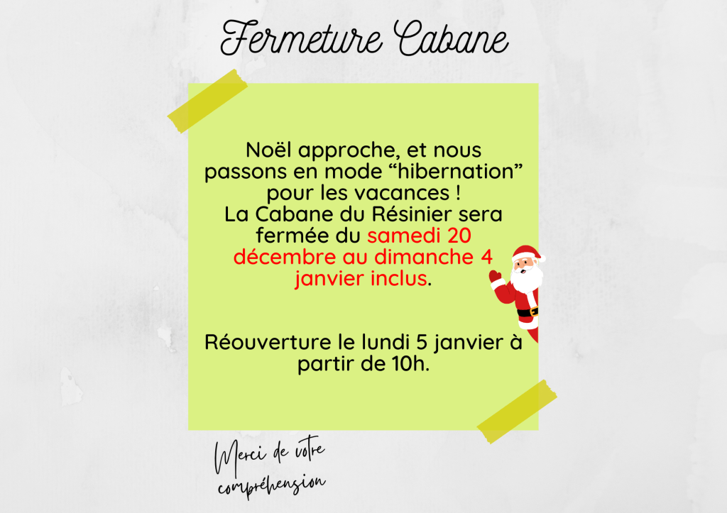 FERMETURE DU SAMEDI 20 DECEMBRE AU DIMANCHE 4 JANVIER