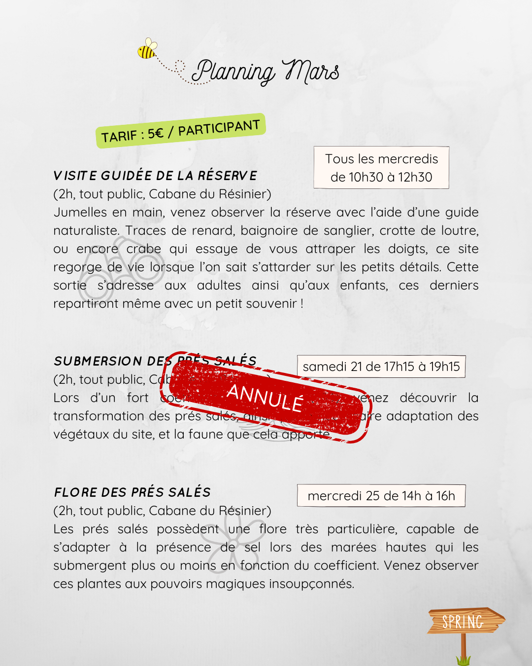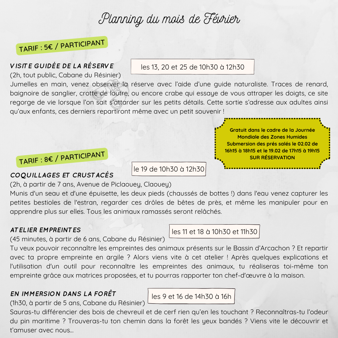 Les places étant limitées, nous vous conseillons fortement de réserver pour toute activité. Présence d’un responsable légal pour les animations avec mineurs. En cas d’annulation ou d’empêchement, merci de nous prévenir afin de libérer les places pour d’autres participants intéressés.